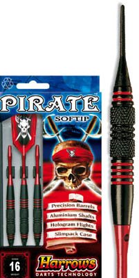 Harrows - Jeu de 3 Fléchettes - Embout Nylon - Pirate Rouge - 16 GK