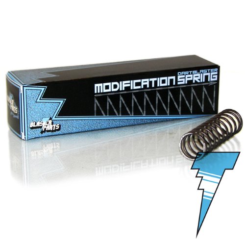 By classical modifications like removing the air restrictor or shortening the path of the spring only soft increases of performance are reached. Only replacing the stock-spring by a modification spring from blasterparts guarantees a notable increase of range of the blaster. All springs have been tested by experienced modders and fit perfectly into your dartblaster.