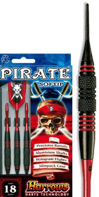 Harrows - Jeu de 3 Fléchettes - Embout Nylon - Pirate Rouge - 18 GK